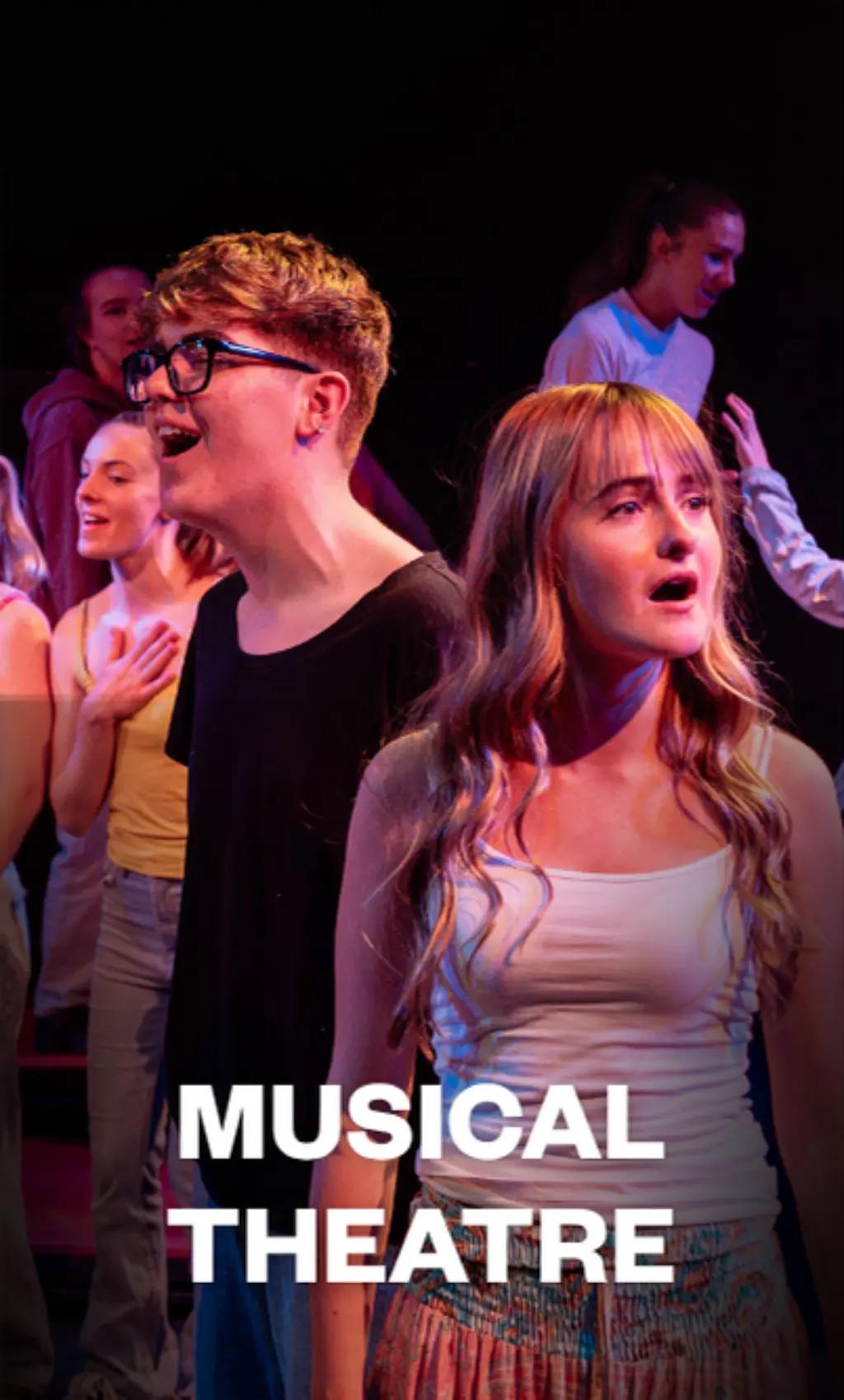 You can choose to specialise in either Performance or Dance, or take the opportunity to combine both throughout the course. In the first year all students also study singing skills.