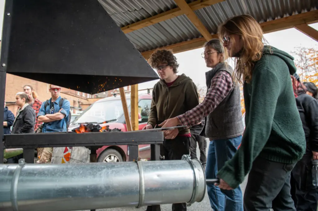 Lisa Wisdom brought her sustainable charcoal forge to HCA, inspiring students to build six portable forges and explore low‑impact, accessible blacksmithing through hands‑on, creative, community‑focused workshops.
